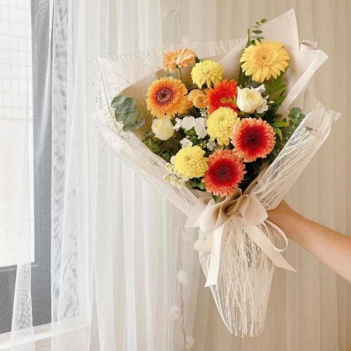 • Nên chọn thêm các phụ kiện đi kèm với bó hoa, như một món quà nhỏ hay một tấm thiệp chúc mừng sếp.