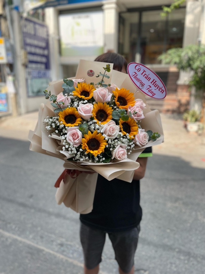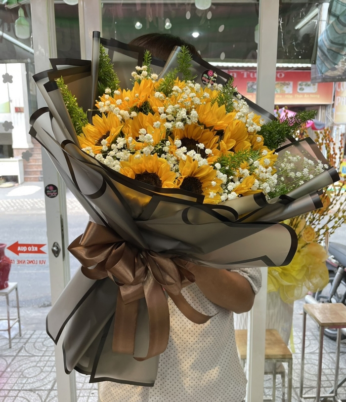 Không chỉ có màu sắc rực rỡ mà hoa hướng dương còn có đặc điểm là luôn hướng về phía mặt trời. Chính vì vậy, nhiều người chọn hoa hướng dương làm hoa tặng sinh nhật sếp nam mang ý nghĩa cầu chúc sếp thành công, sự nghiệp ngày càng thăng hoa.