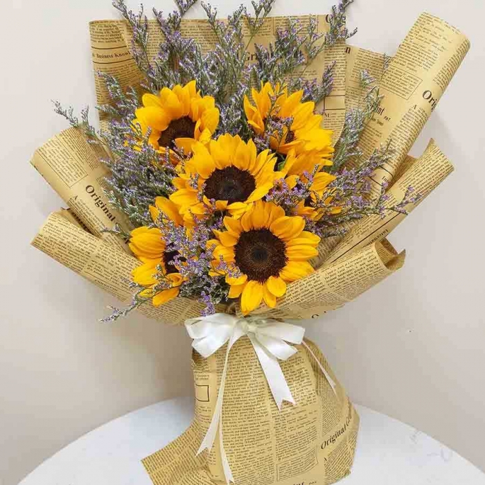 Hoa sinh nhật màu vàng được thể hiện bằng những bông hoa hướng dương rực rỡ. Nếu cô ấy là một người yêu hoa hướng dương hoặc là một người cứng rắn, thì đây là lời khuyên dành cho bạn. Dù không phải là hoa tặng sinh nhật lãng mạn nhưng nó vẫn ẩn chứa tình yêu thương. và những lời chúc tốt đẹp nhất đến cô ấy.