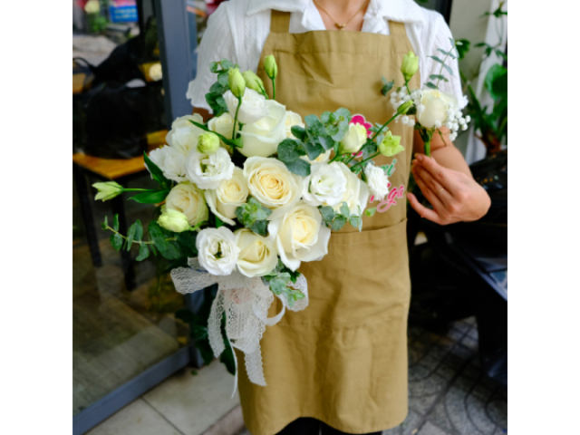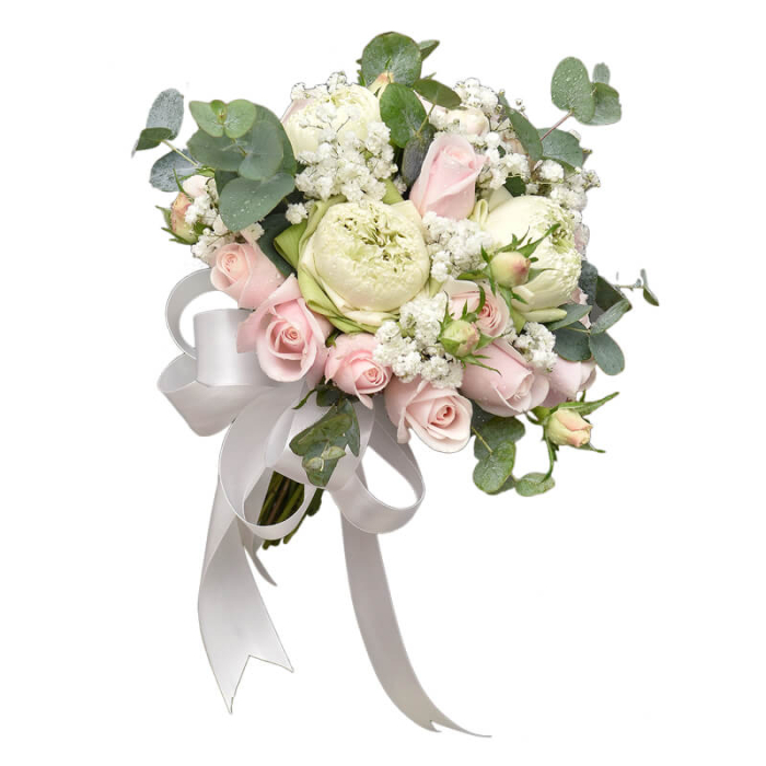 Kiểu dáng bó hoa cầm tay khác cũng xứng đáng được nhắc đến là bó hoa kết hợp hoa hồng và hoa baby trắng. Màu trắng tượng trưng cho sự trong sáng và tinh khiết, hoa hồng và hoa baby trắng càng làm nổi bật thêm tổng thể của bó hoa. Sự kết hợp này mang đến một vẻ đẹp sang trọng và thanh lịch, phù hợp với các cô dâu muốn tạo dựng hình ảnh một nàng công chúa trong ngày trọng đại của mình.