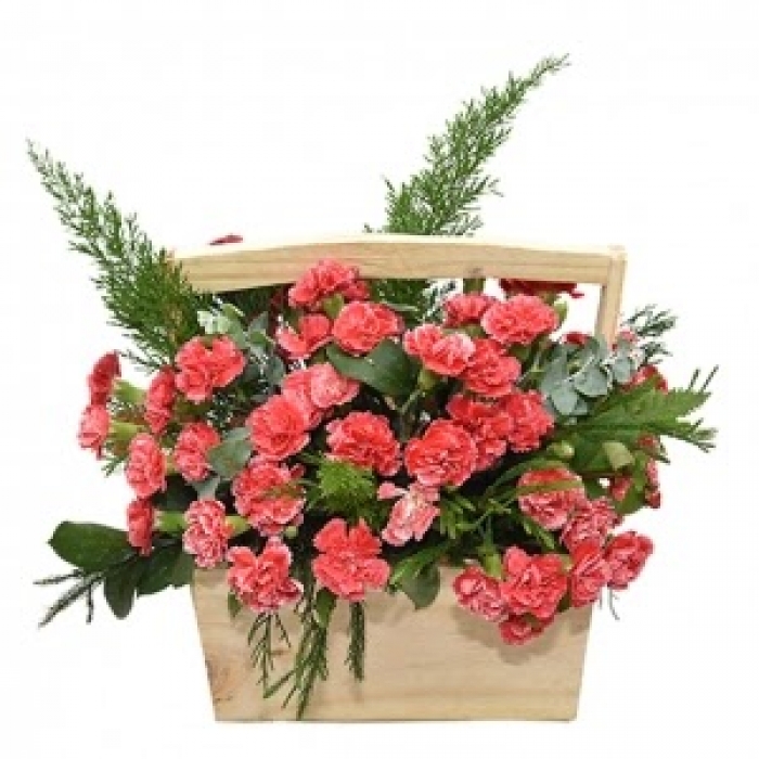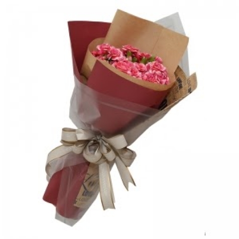 Mẫu hoa này được kết hợp từ hoa cẩm chướng màu hồng đậm, kèm hoa baby trắng và một số loài hoa lá phụ. Giúp tôn lên vẻ đẹp rạng rỡ của đóa hoa cẩm chướng.